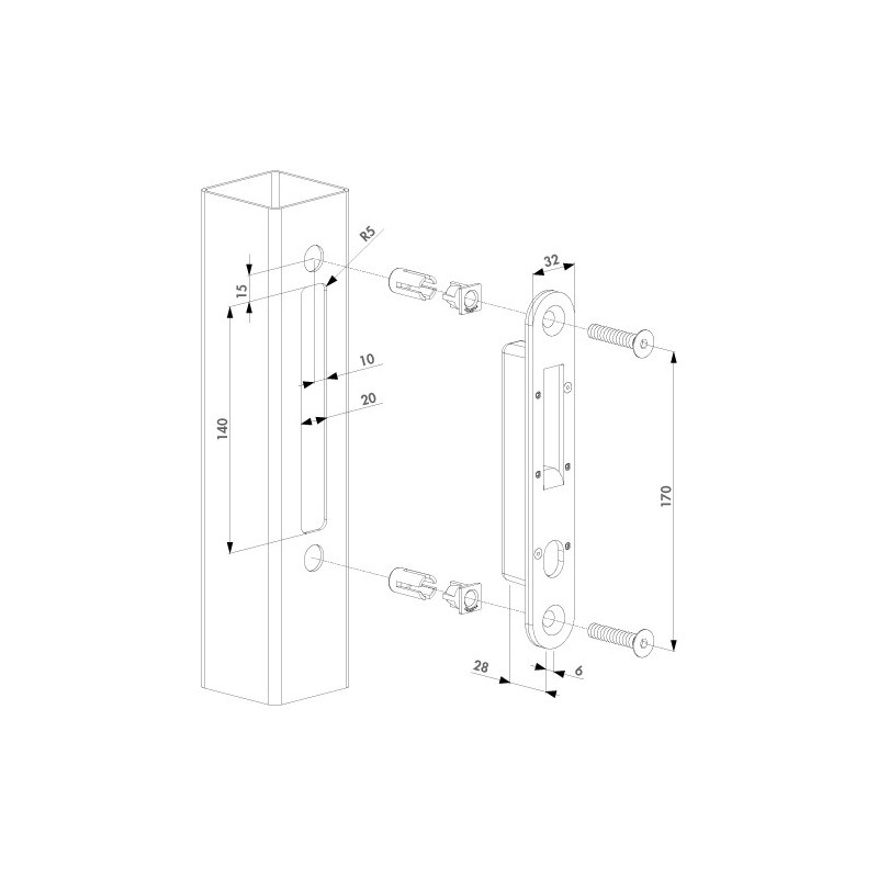 Głębokość ryglowania 33 mm za pomocą haka zapewnia solidne zamknięcie bramy przesuwnej i zapobiega
