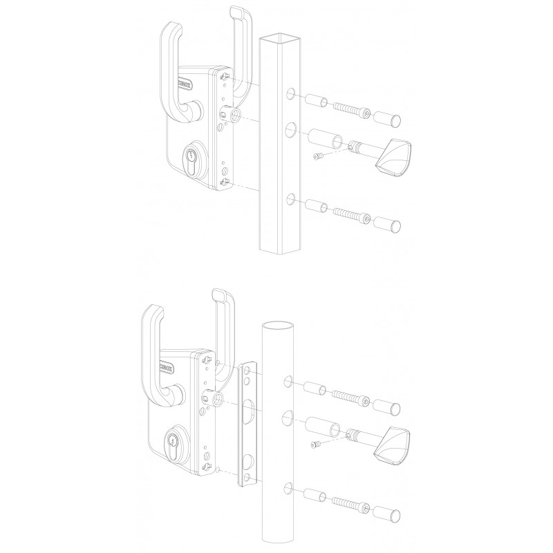 Zamek do bram przesuwnych z nierdzewnym mechanizmem w obudowie aluminiowej. Dopracowany rygiel Twist i zaczep samokorygujący tworzy solidne i bardzo dobrze współpracujące zamknięcie.