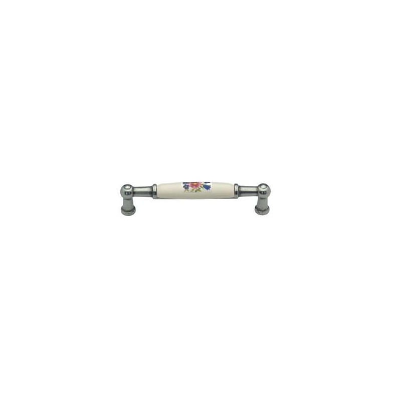 Möbelgriff Weißporzellan mit silbernen Distanzen Lochabstand: 96mm