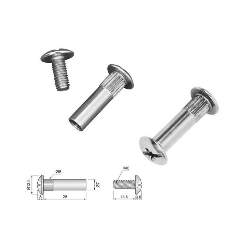 Złącze meblowe śrubowe do łączenia dwóch płyt o grubości 18cm.