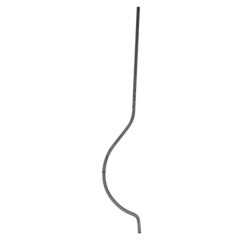 Stalowy element kuty - tralka z wybrzuszeniem wykonana z pręta kwadratowego 12x12 mm. Tralki tego typu można wykorzystać do projektowania balustrad balkonowych i tarasowych, jak również ogrodzeń, krat czy furtek. Produkt w stanie surowym, do wykończenia we własnym zakresie.