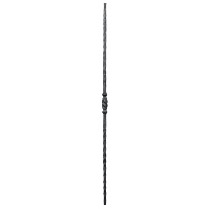 Stalowa, prosta tralka kuta, wykonana z pręta kwadratowego fakturowanego 14x14 mm. W środkowej części została ozdobnie rozkuta. Tralki tego typu można wykorzystać do projektowania ogrodzeń oraz balustrad schodowych. Produkt w stanie surowym, do wykończenia we własnym zakresie.