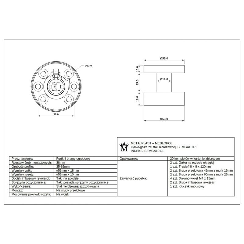 ZAWARTOŚĆ PUDEŁKA:dwie gałki+akcesoria montażowe