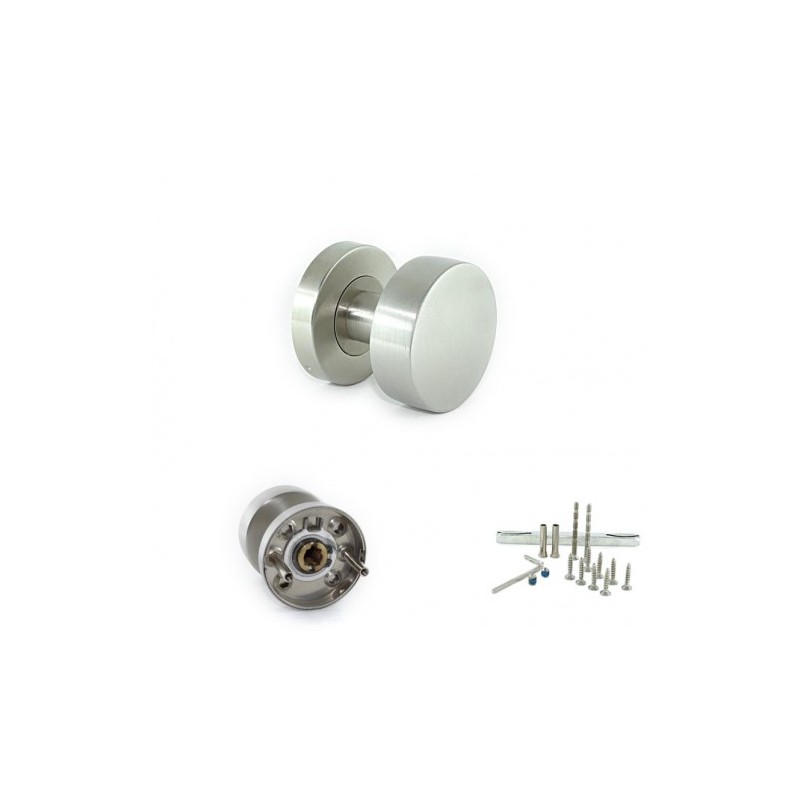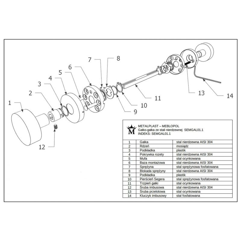 MATERIAŁ WYKONANIA: gałki i rozety-stal nierdzewna 304, baza montażowa-stal nierdzewna 201,wsad-stal mosiądzowana
