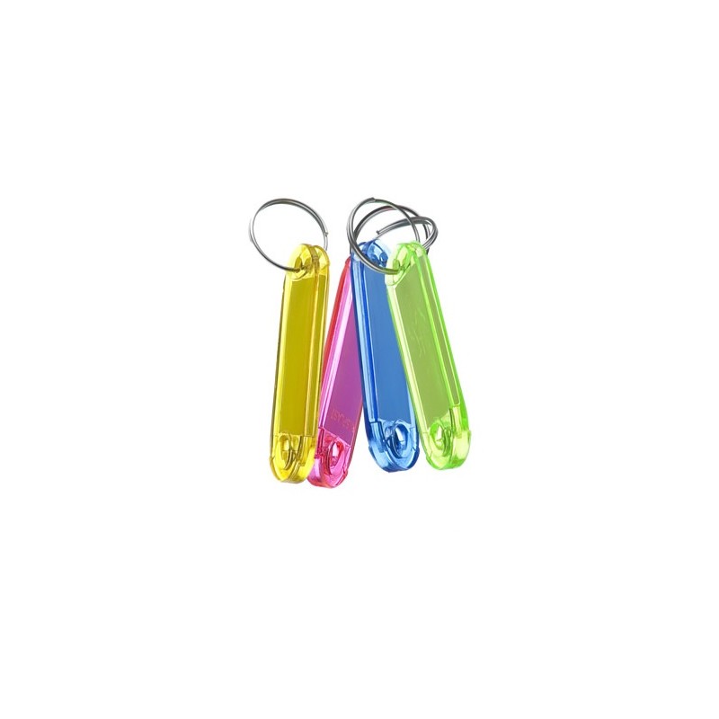 Plastikowy identyfikator, zawieszka do kluczy, wymienne kartki widoczne z dwóch stron.