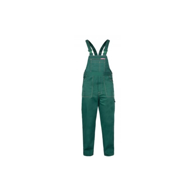 6 kieszeni, w tym 1 zamykana na suwak. Podwójne szwy. Regulacja szerokości w pasie za pomocą guzików i gumki. Szelki z regulacją długości za pomocą zapięcia i gumki. Szlufka na młotek i miarkę. Kontrastujące szwy, podkreślające dokładność i precyzję wykończenia. Wszywka identyfikacyjna.