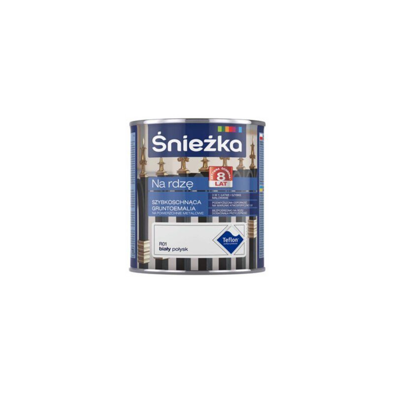 Śnieżka na Rdzę to szybkoschnąca gruntoemalia zabezpieczająca powierzchnie stalowe i żeliwne przed korozją. Jest doskonała do wykonywania zarówno nowych wymalowań jak i renowacji starych powłok malarskich na: