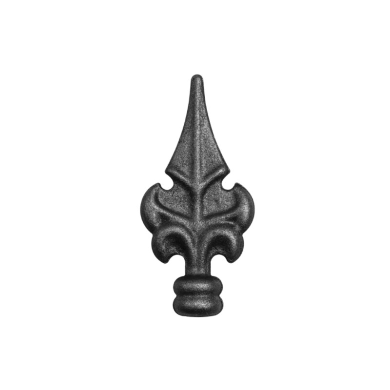 Stalowy element kuty - grot wykorzystywany najczęściej jako zwieńczenie prętów lub profili w bramach, furtkach i przęsłach ogrodowych. Produkt w stanie surowym, do wykończenia we własnym zakresie.