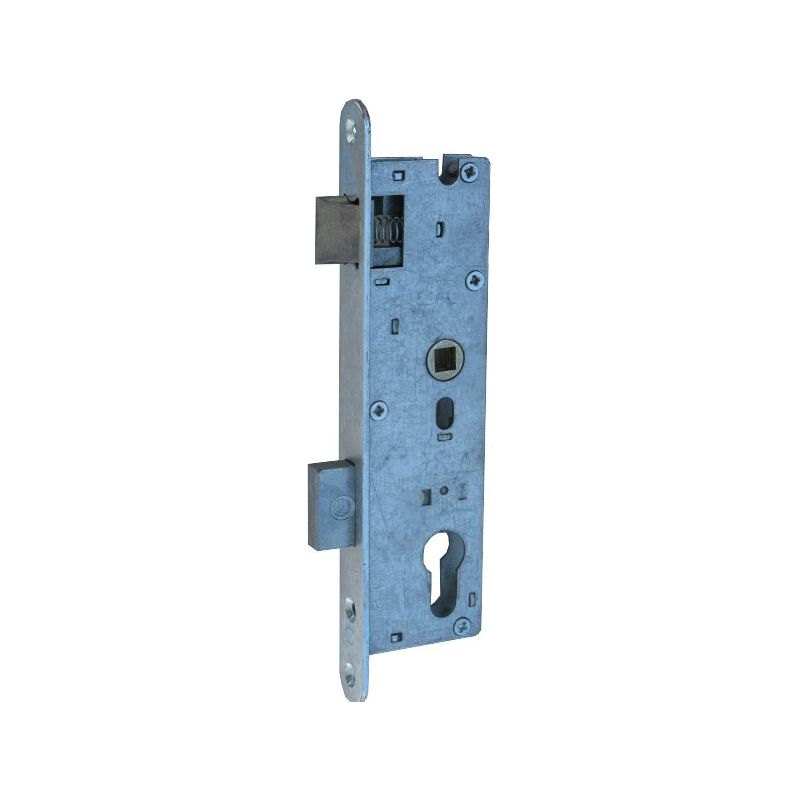 Zamek wpuszczany zapadkowo-zasuwkowy z dźwignią, do drzwi metalowych. Wykonany jest w całości z blach ocynkowanych na biało. Zamek jest uniwersalny - zapadkę przekłada się po odkręceniu pokrywy. Do stosowania w stolarce aluminiowej, metalowej, plastikowej i do furtek.