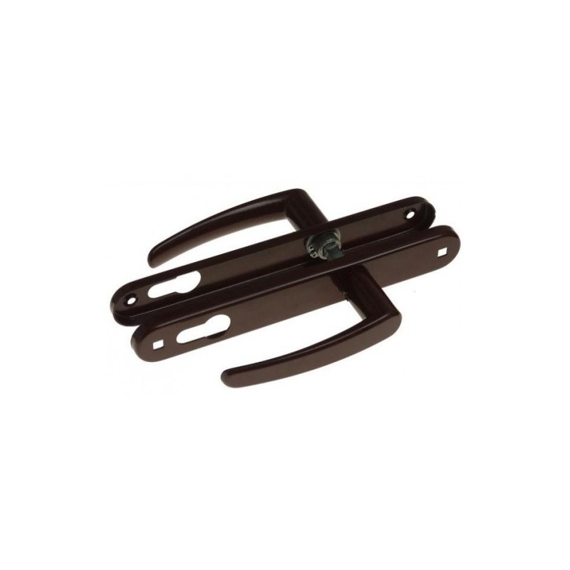 Klamka D1 na długim szyldzie. Rodzaje: na wkładkę, na klucz, gładka. Kolor BRĄZ.