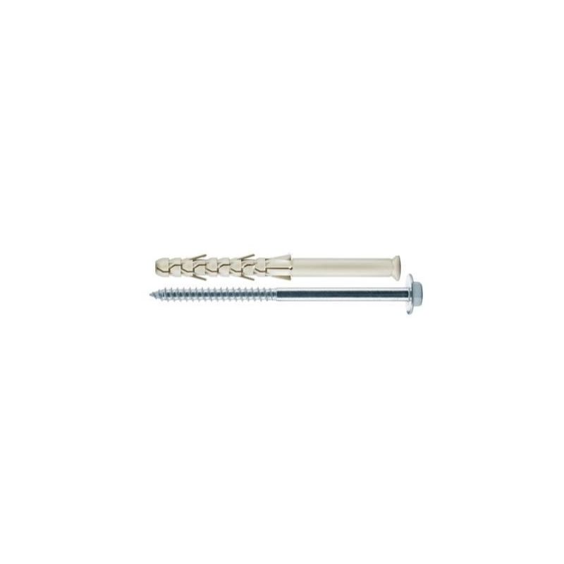 Dybel ramowy, koszulka nylonowa z długą strefą rozporową, wkręt z łbem sześciokątnym z zespoloną podkładką, ocynkowany na biało