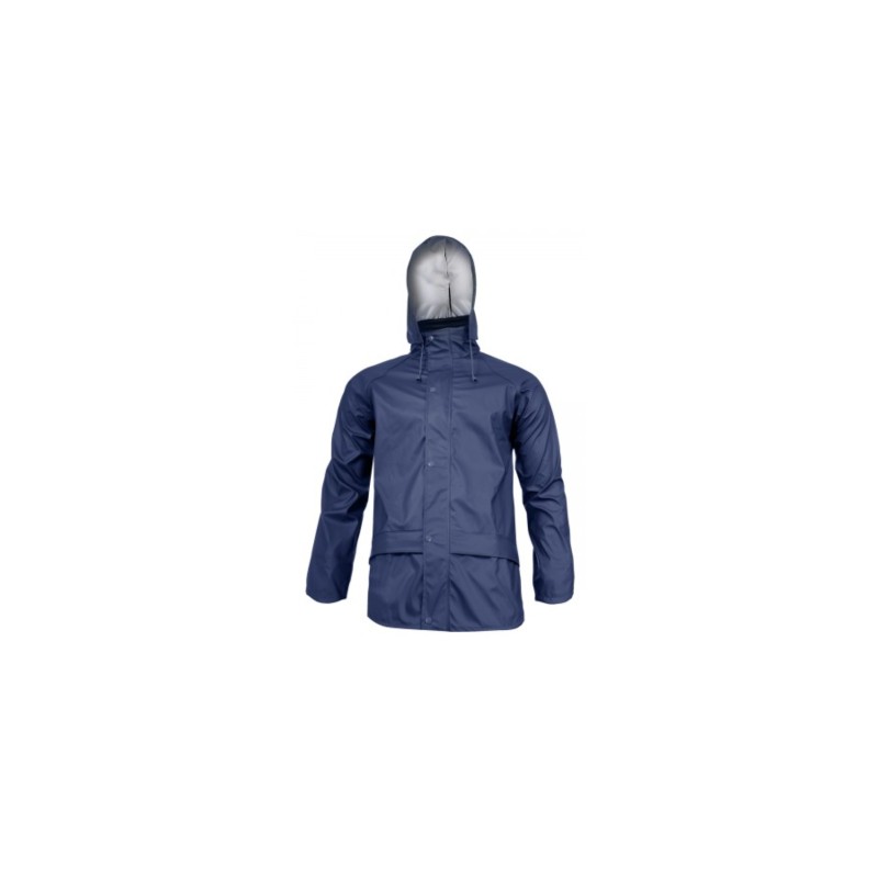 Zastosowany lekki materiał (100% Poliuretan) zapewnia komfort użytkowania oraz podnosi wytrzymałość i odporność na uszkodzenia mechaniczne. Otwory wentylacyjne pod pachami zwiększające cyrkulację powietrza. Wodoodporny kaptur z regulacją, chowany w kołnierzu zamykanym na suwak. Mankiety zakończone wewnętrznym, elastycznym ściągaczem, chroniącym przed wiatrem i wodą. Regulacja szerokości u dołu kurtki za pomocą ściągacza. Zamek błyskawiczny z dodatkową klapką zapinaną na napy. 2 kieszenie zewnętrzne