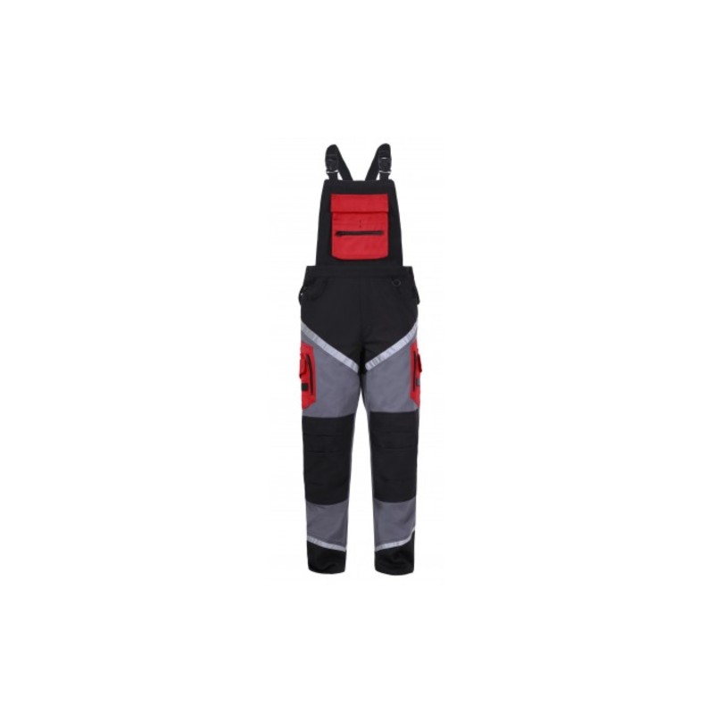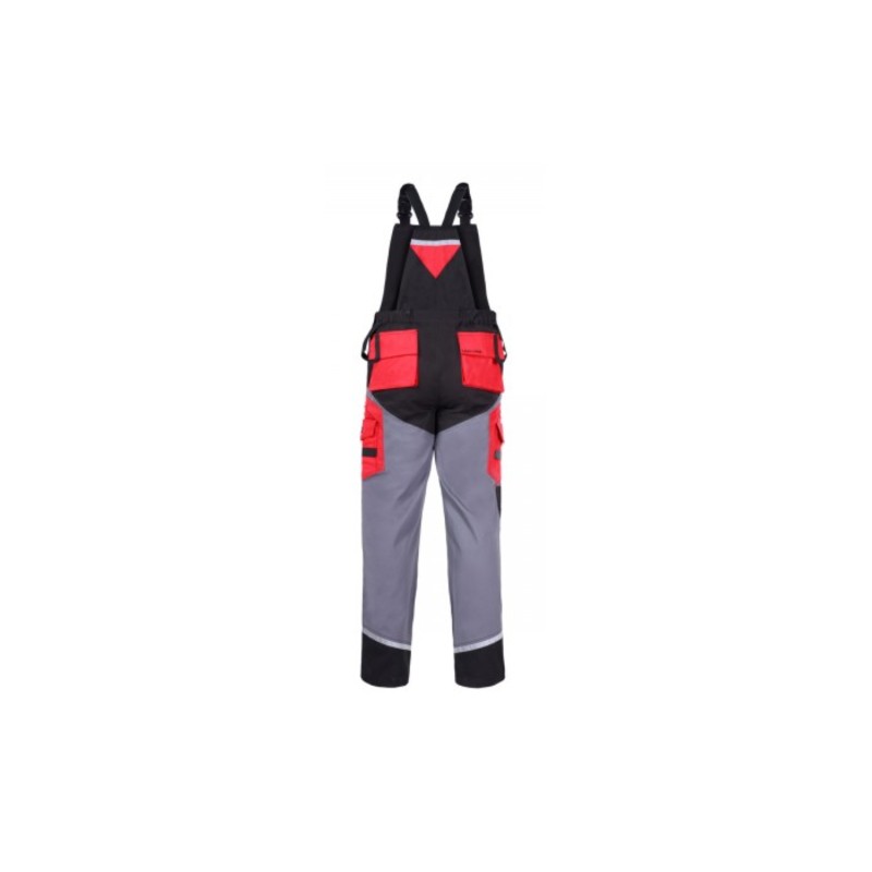 Otwory wentylacyjne w kroku zwiększające cyrkulację powietrza, pasy odblaskowe zwiększające bezpieczeństwo podczas pracy.